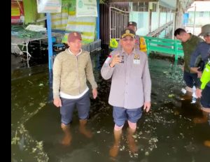 Untuk masuk melihat ke kawasan yang cukup tinggi genangan airnya, Supian HK, bersama Kapolres dan beserta Danramil HSU, menggunakan motor speadboot, sedang kawasan yang airnya tak lebih diatas lutut, mereka pun berjalan kaki menyusuri sambil melihat rumah-rumah warga yang terendam.
